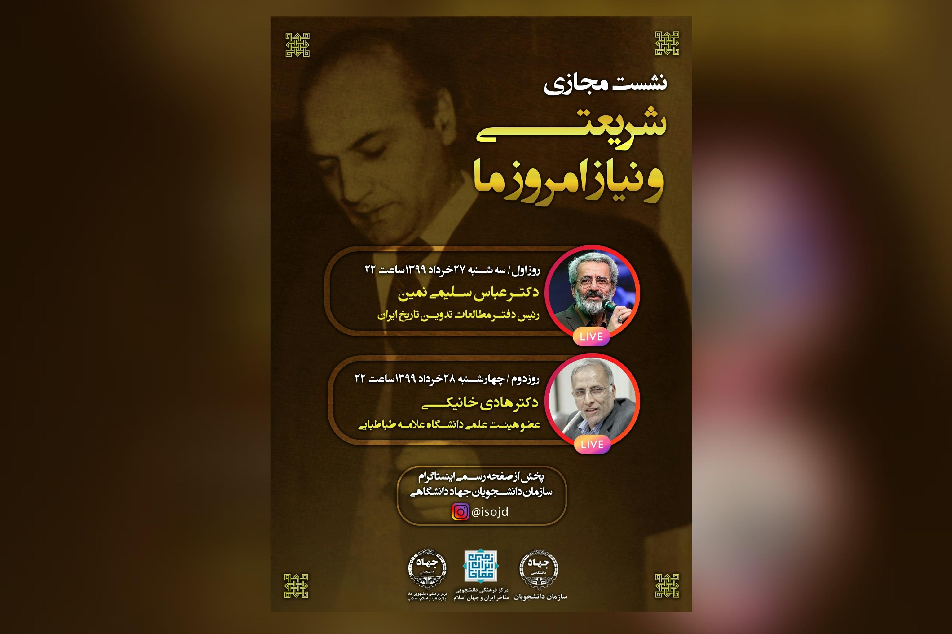 این نشست که در روزهای سهشنبه و چهارشنبه ۲۸ و ۲۹ خرداد ۱۳۹۹ در ساعت ۲۲ از طریق صفحه رسمی سازمان دانشجویان جهاد دانشگاهی به آدرس www.instagram.com/isojd پخش خواهد شد، در شب اوّل با دکنر عباس سلیمی نمین، رئیس مؤسسه مطالعات تدوین تاریخ ایران و در شب دوم نیز با دکتر هادی خانیکی، عضو هیئت علمی دانشگاه علامه طباطبایی به گفتگو خواهد نشست.