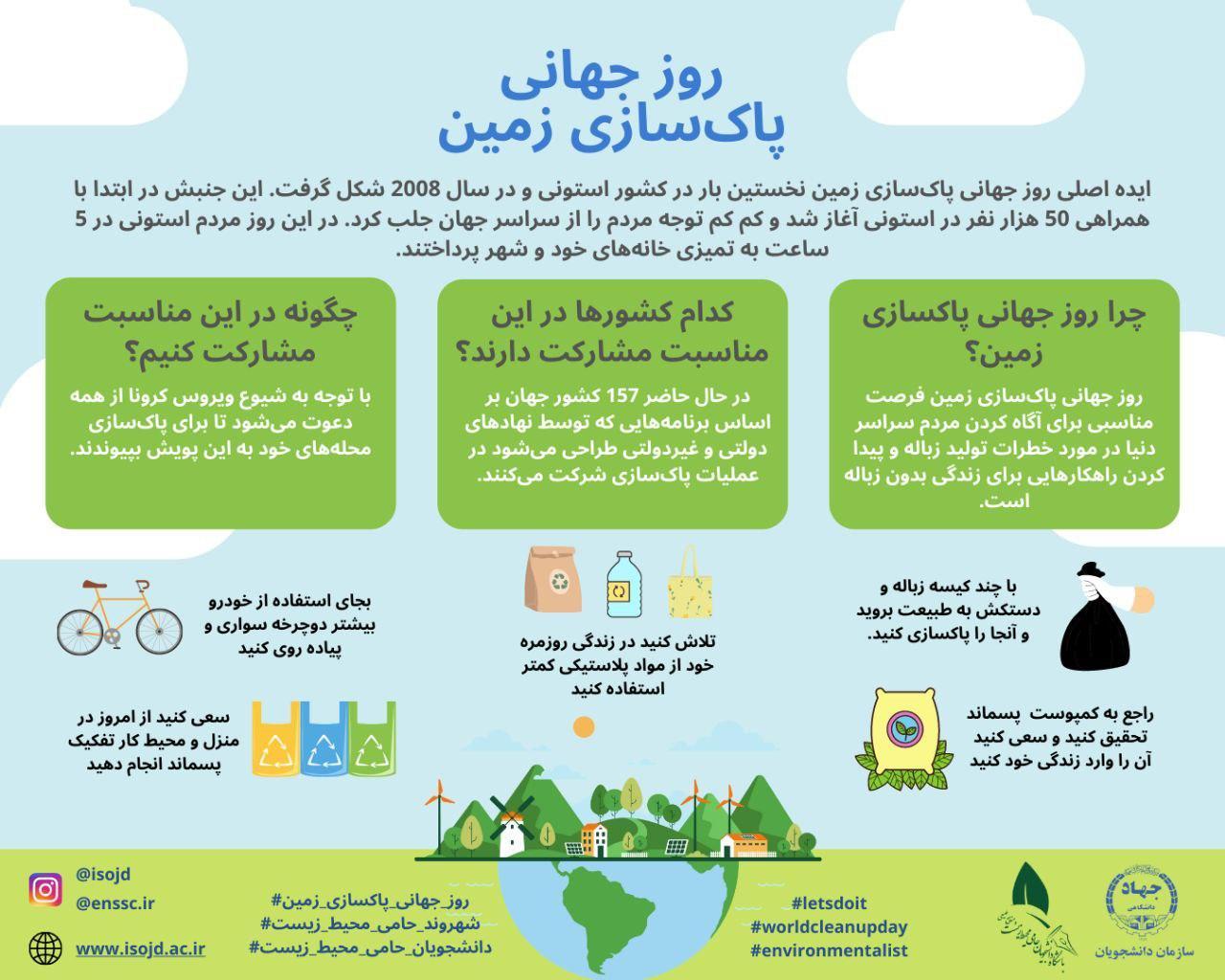 اینفوگرافیک با محتوای ارائه راهکارهایی برای داشتن زمین پاک توسط باشگاه دانشجویان حامی محیط زیست و منابع طبیعی منتشر شد.