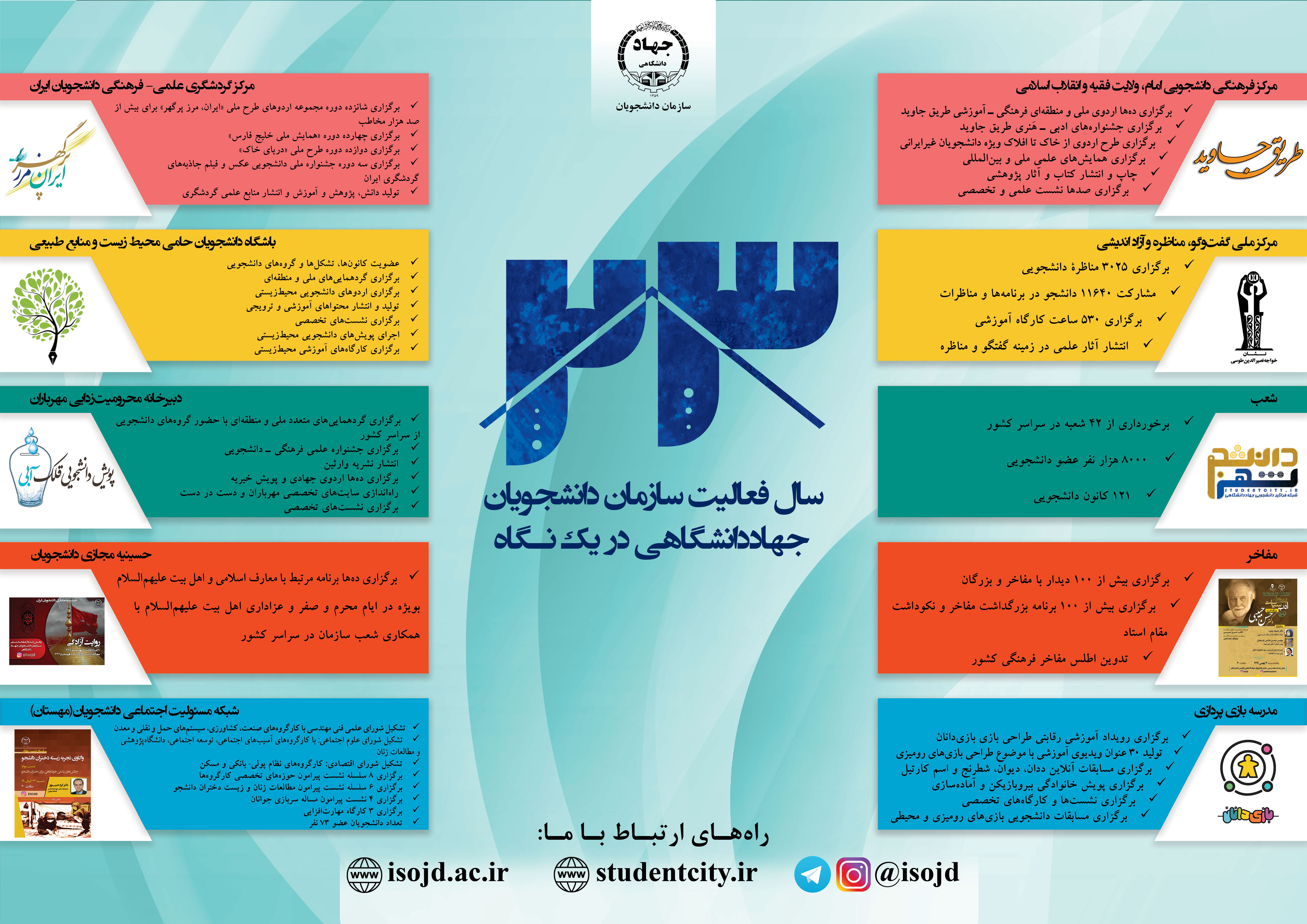 سازمان دانشجویان در بیست و سه سال گذشته؛ سازمان دانشجویان پل ارتباطی بین دانشگاه و جامعه در زمان کرونا/ شاخصترین برنامههای دانشجویی سازمان در سراسر کشور /سازمان دانشجویان، فراگیرترین شبکه توانمندسازی دانشجویان در گام دوم انقلاب اسلامی/ ۱۴ شهریور ۱۴۰۰ | ۱۵:۲۰ کد : ۲۵۹۹ شُعَب سازمان دانشجویان اسلایدر ارسال به دیگران نام شما ایمیل شما ایمیل دریافتکننده ارسال انصراف