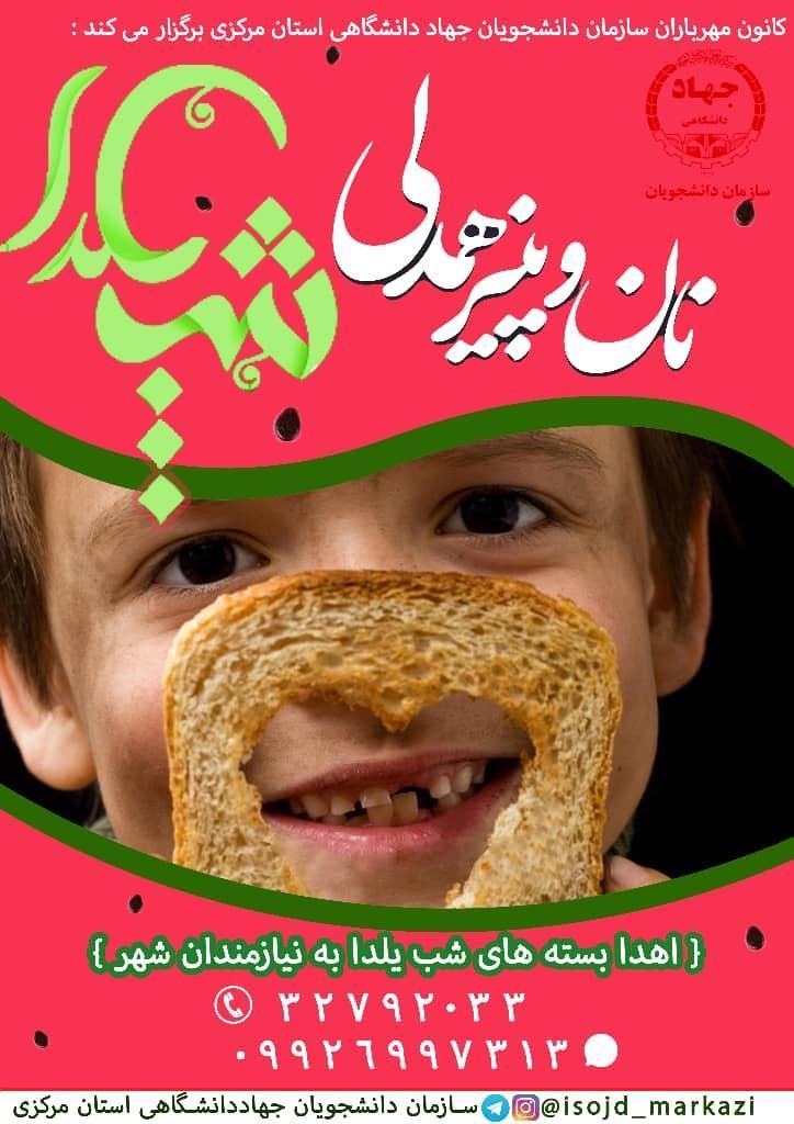 به گزارش روابط عمومی سازمان دانشجویان جهاددانشگاهی استان، علیرضا دارابی مدیر اجرایی سازمان دانشجویان جهاددانشگاهی استان مرکزی، گفت: در آستانه شب یلدا، طرح هماهنگ «نان و پنیر همدلی» به همت کانون مهرباران سازمان دانشجویان جهاددانشگاهی استان اجرا میشود.