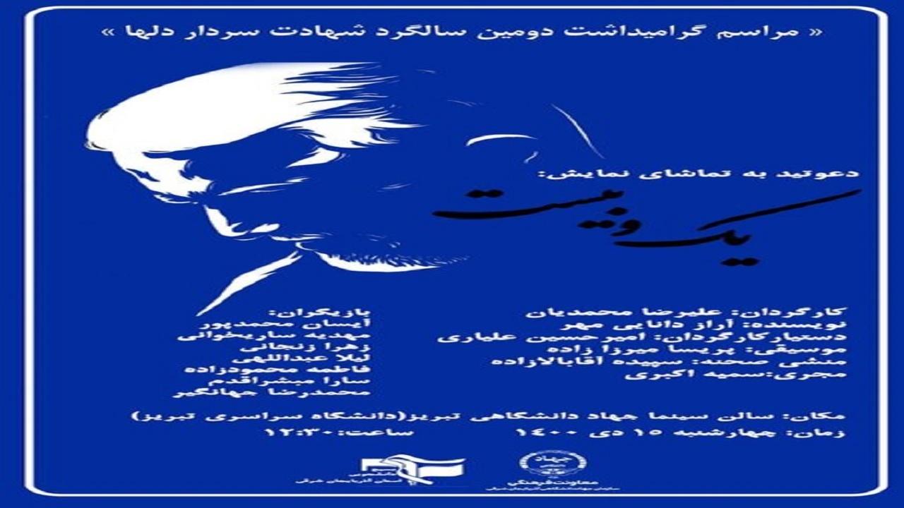 به گزارش روابط عمومی سازمان دانشجویان جهاددانشگاهی و به نقل از باشگاه خبرنگاران جوان، نمایش «یک و بیست» توسط گروه فرهنگی_هنری و رسانهای «یاراد» و با همکاری معاونت فرهنگی سازمان جهاد دانشگاهی آذربایجان شرقی و ناحیهی بسیج دانشجویی آذربایجان شرقی در سینمای جهاددانشگاهی در دانشگاه تبریز اجرا خواهد شد.