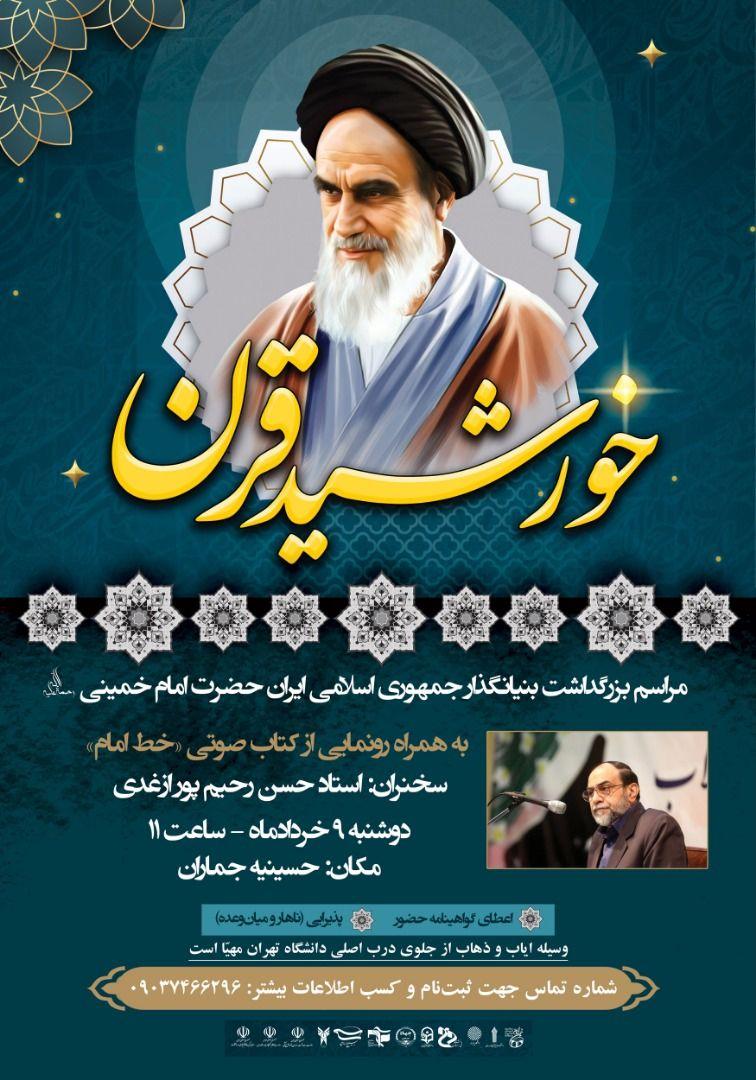به گزارش روابط عمومی سازمان دانشجویان ایران، همزمان با فرارسیدن سی و سومین سالگرد ارتحال رهبر کبیر انقلاب اسلامی حضرت امام خمینی (رحمت الله علیه)، مراسم "خورشید قرن" با حضور دانشجویان و علاقمندان اندیشهها و آرمانهای بنیانگذار انقلاب اسلامی برگزار خواهد شد.