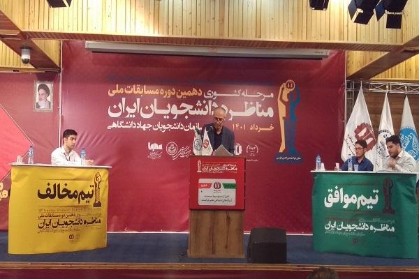 به گزارش خبرنگار ایکنا، مرحله نیمه نهایی دهمین دوره مسابقات ملی مناظره دانشجویان ایران یکشنبه ۸ خرداد ماه سال جاری، با دو گزاره به همت سازمان دانشجویان جهاددانشگاهی در باشگاه دانشجویان دانشگاه تهران برگزار شد.