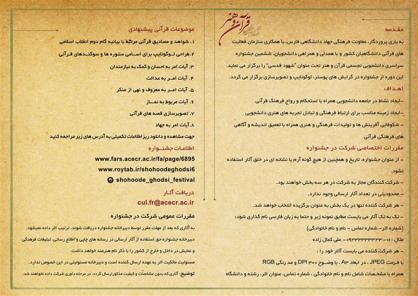 ششمین جشنواره سراسری دانشجویی تجسمی قرآن و هنر برگزار خواهد شد.