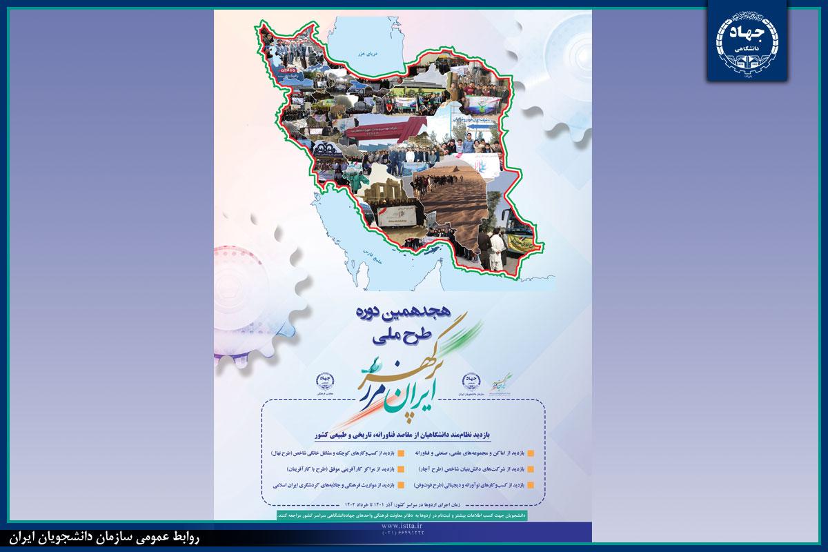 وی افزود: اردوهای هجدهمین دوره طرح با رویکردهای جدید و متفاوت از ادوار گذشته و تنوعبخشی در اردوها، همراه است که علاوه بر بازدیدهای مرسوم طرح ملی «ایران، مرز پرگهر» از اماکن و مجموعههای علمی، صنعتی و فناورانه و مواریث فرهنگی، جاذبههای گردشگری و طبیعی کشور، بازدید از شرکتهای دانشبنیان شاخص (آچار)، کسبوکارهای نوآورانه و دیجیتالی (فوتوفن)، کسبوکارهای کوچک و مشاغل خانگی موفق و شاخص (نهال)، مراکز کارآفرینی موفق (باکارآفرینان) صورت خواهد گرفت که تا پایان خرداد 1402 ادامه خواهد داشت.