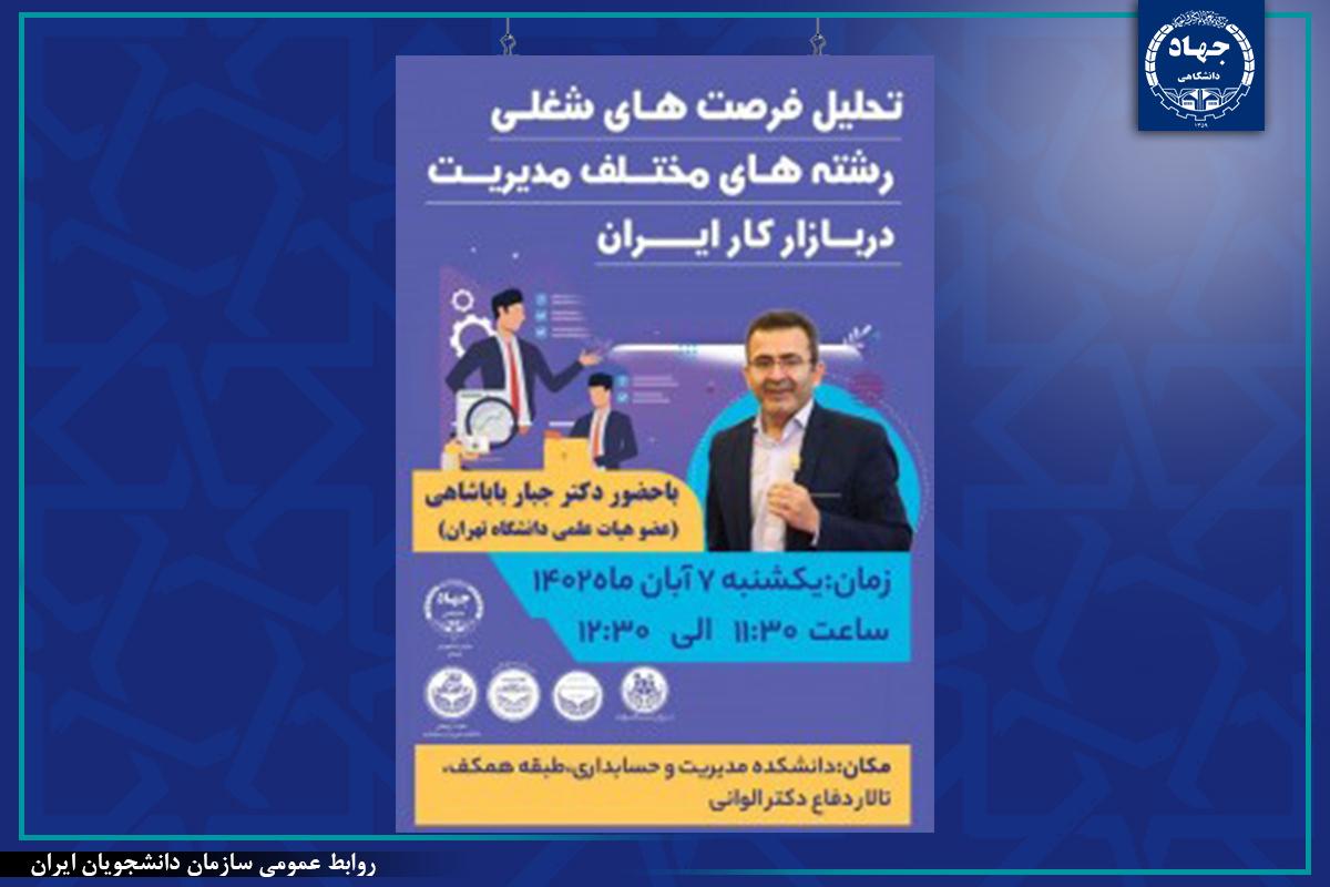 کارگاه «تحلیل فرصتهای شغلی رشتههای مختلف مدیریت در بازار کار ایران» توسط سازمان دانشجویان جهاددانشگاهی استان قم برگزار شد