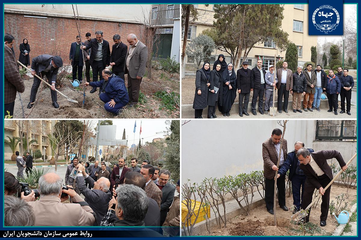 2 نهال با پلاکهایی به نام و تصویر جهادگر شهید «امیر مهرداد» و جهادگر شهید «امین جواهری» در ساختمان دفترمرکزی جهاددانشگاهی و 3 نهال به نام جهادگر شهید «محمدحسین قریب طرزه»، جهادگر شهید «اسماعیل عمرانی» و خبرنگار محیط زیستی زندهیاد «مهشاد کریمی» در خبرگزاری ایسنا، 1 نهال به نام جهادگر شهید «حجه الاسلام والمسلمین سیدمهدی تقوی» در سازمان فعالیتهای قرآنی(ایکنا) و 1 نهال به نام جهادگر شهید «عبدالله فرهادی» در پژوهشکده علوم بهداشتی جهاددانشگاهی کاشته شد.