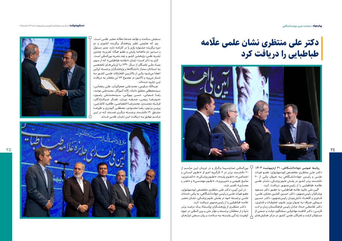 ✔️ دکتر علی منتظری نشان علمی علّامه طباطبایی را دریافت کرد