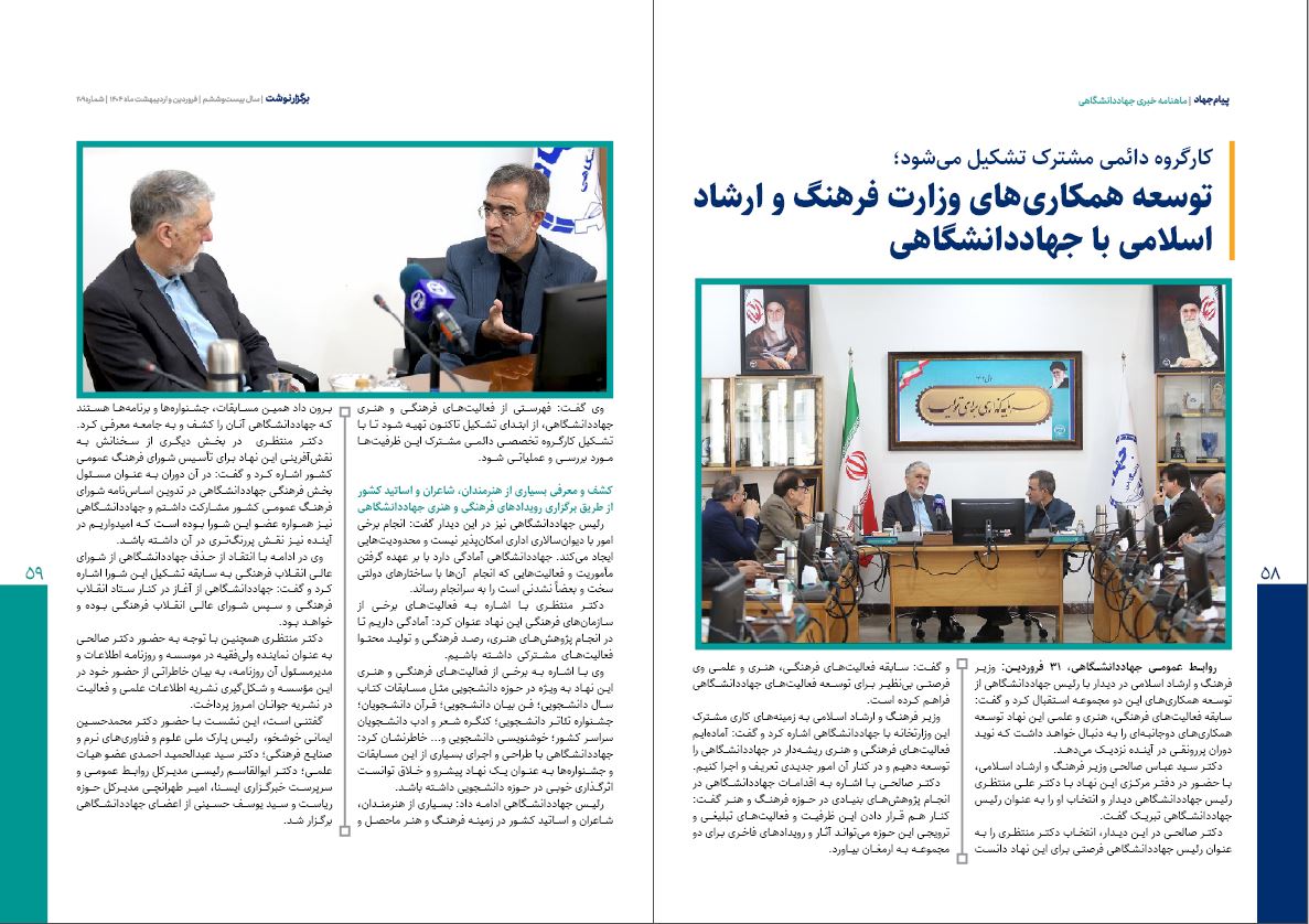 ✔️ توسعه همکاریهای وزارت فرهنگ و ارشاد اسلامی با جهاددانشگاهی