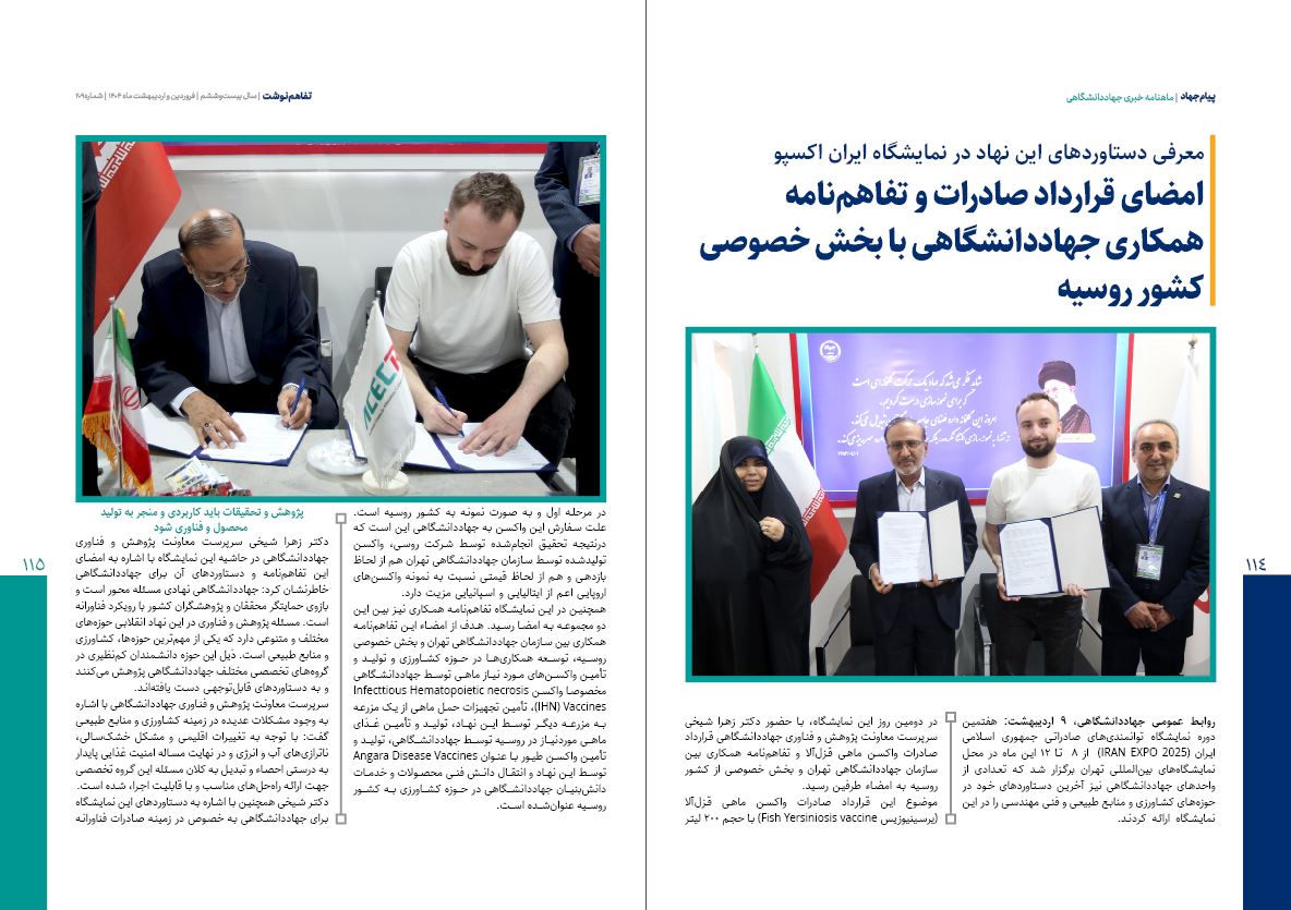 ✔️ امضای قرارداد صادرات و تفاهمنامه همکاری جهاددانشگاهی با بخش خصوصی کشور روسیه