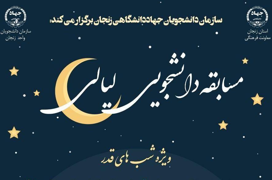 مسابقه دانشجویی لیالی همزمان با شب های قدر در زمینه های دلنوشته، خاطره، شعر، عکس و کلیپ صوتی یا تصویری برگزار می شود.