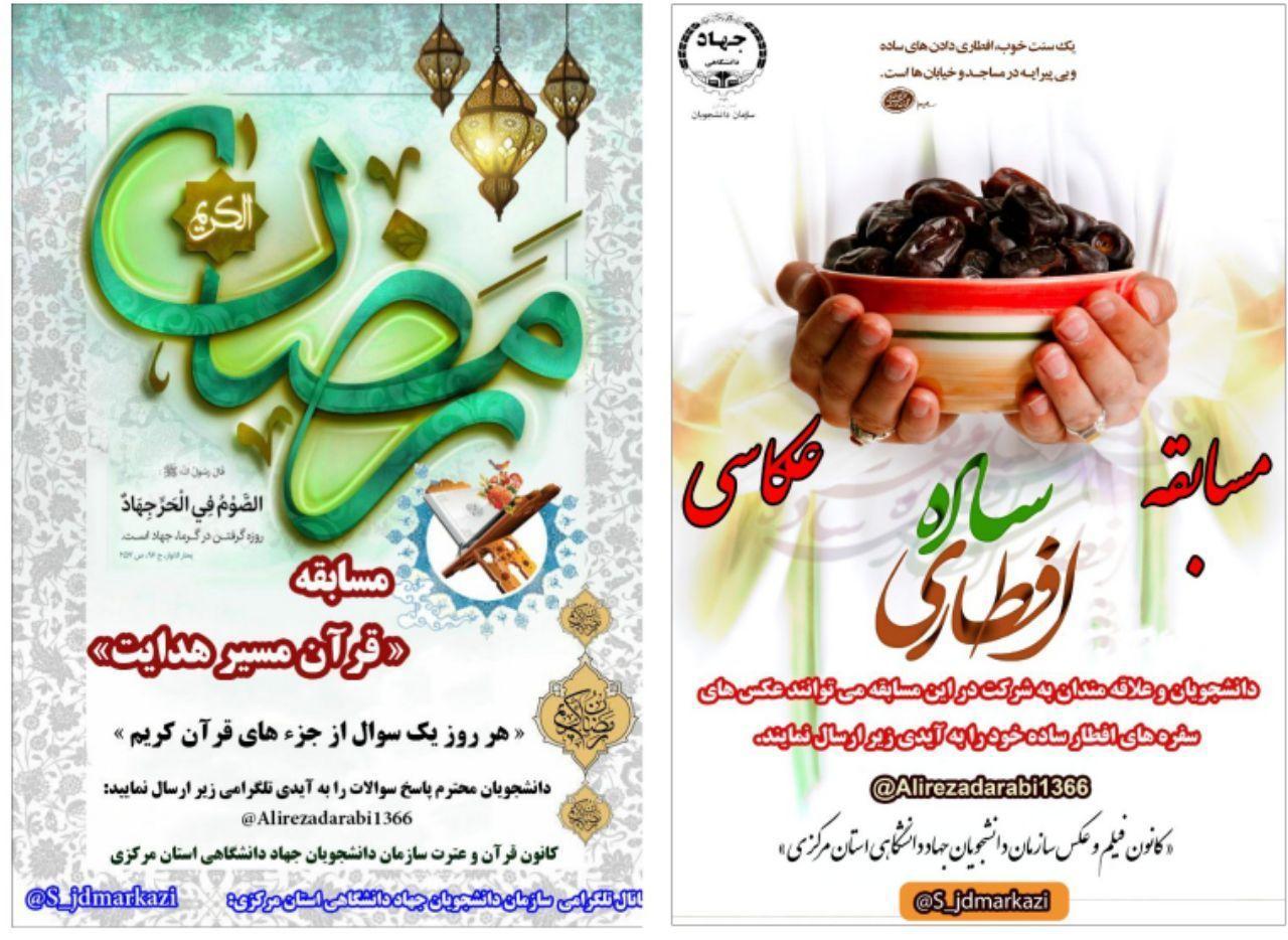 همچنین مسابقه عکاسی افطاری ساده به همت کانون فیلم و عکس سازمان دانشجویان جهاد دانشگاهی استان مرکزی برگزار می شود.